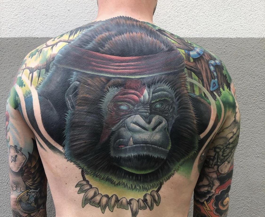 8 Gorilla Cover Up Back Tat By Scott Olive At Oddity Tattoo In Sarasota : R/ Tattoos Scelta